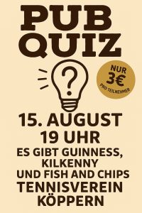 Am Freitag, den 15. August entführen uns die Herren 50 nach Irland und starten ein irisches Kneipenquiz.